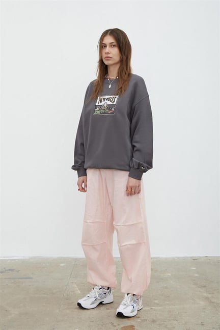 Kadın Antrasit Sırt Baskılı Oversize Batik Sweatshirt