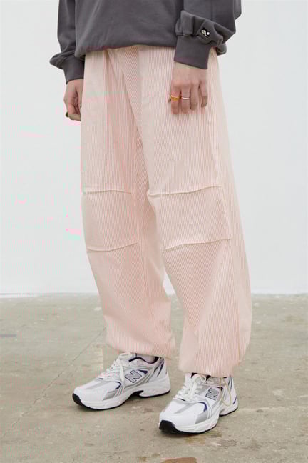 Kadın Mavi Çizgili Paraşüt Pj Pantolon
