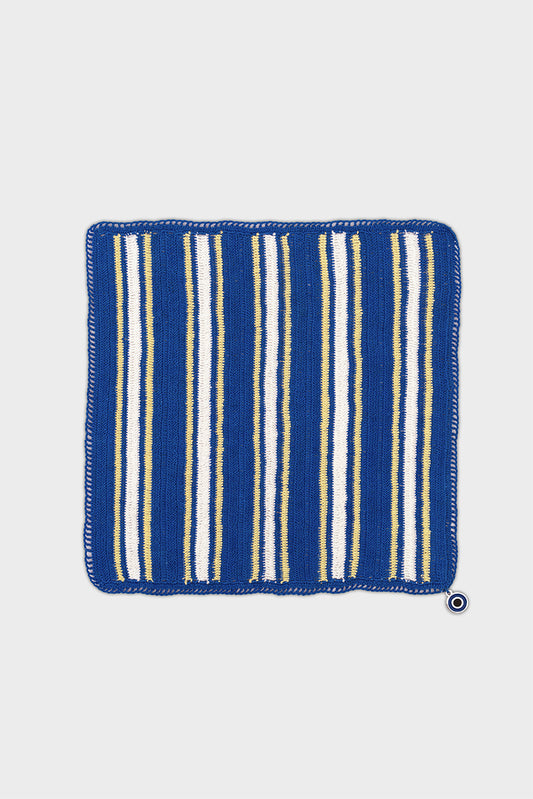 Mavi Sarı Krem Stripes El İşi Dantel Örtü