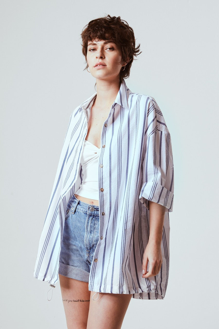 -The hem can be tightened with elastic, so it can achieve a different shape and air