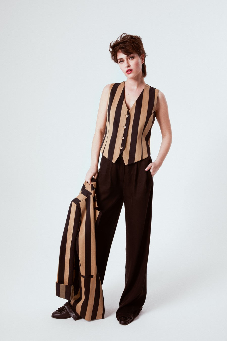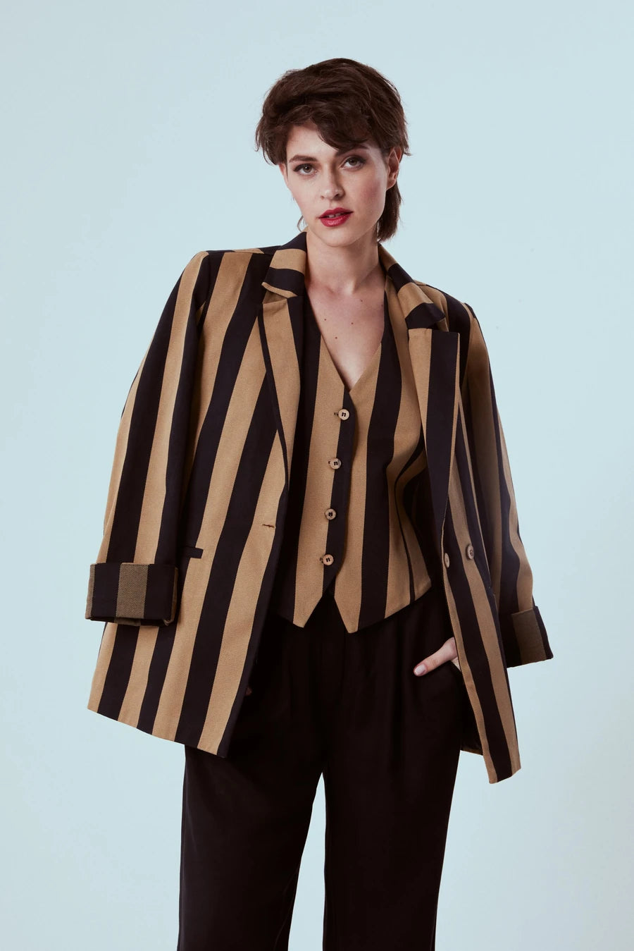 - İster bluz, ister yelek olarak giyilebilir.