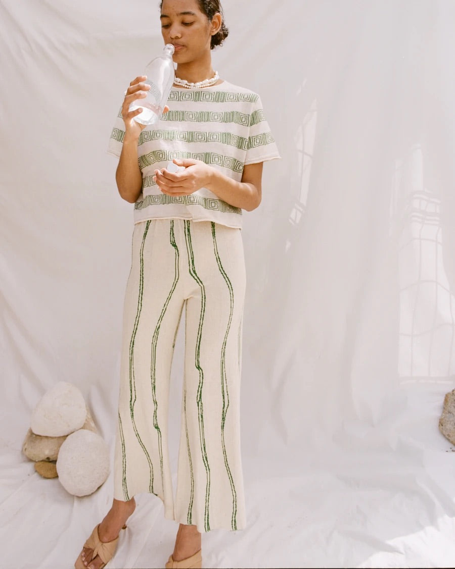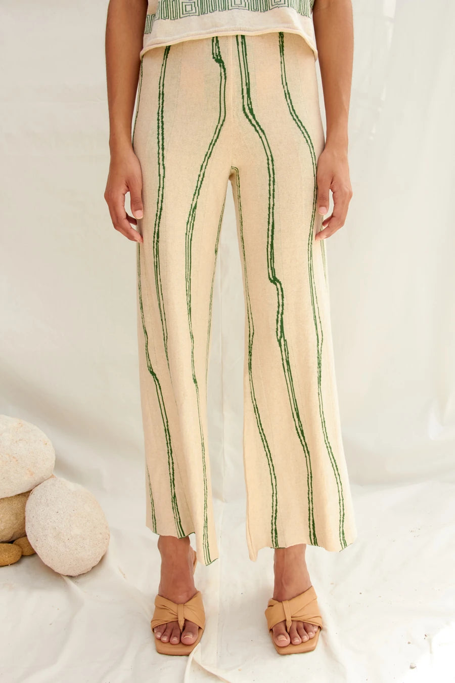 Jakarlı, beli lastikli, ince triko pantolon